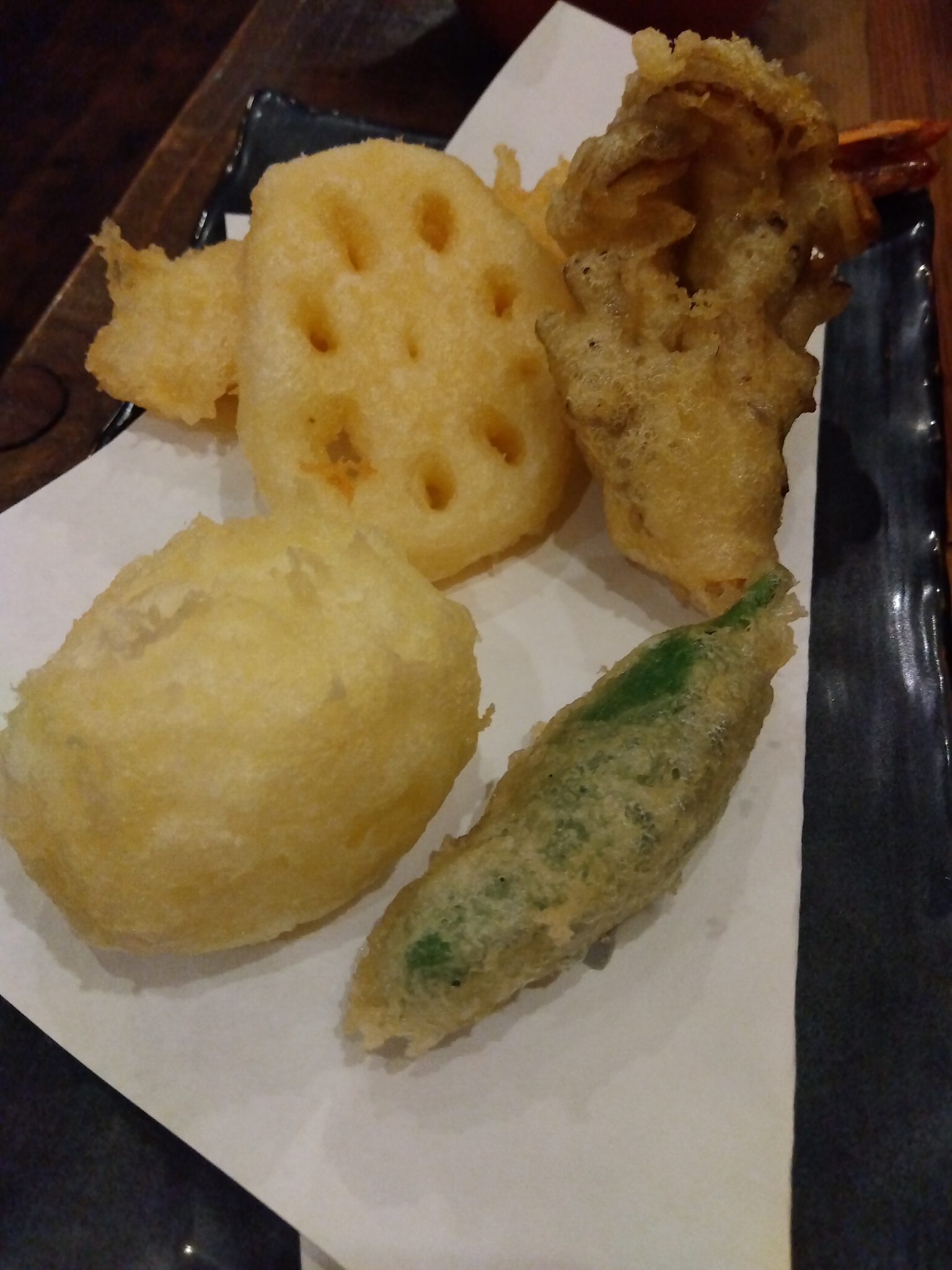天ぷらとお刺身が頂けます。天ぷらは単品だと100円〜200円代で、割とリーズナブルな方だと思います。天ぷらメニューでカニミソ、大葉いくらなど、珍しい品がありました。半熟卵天ぷらがとても美味しかったです。スタッフさんは、皆さんが感じ良かったです。