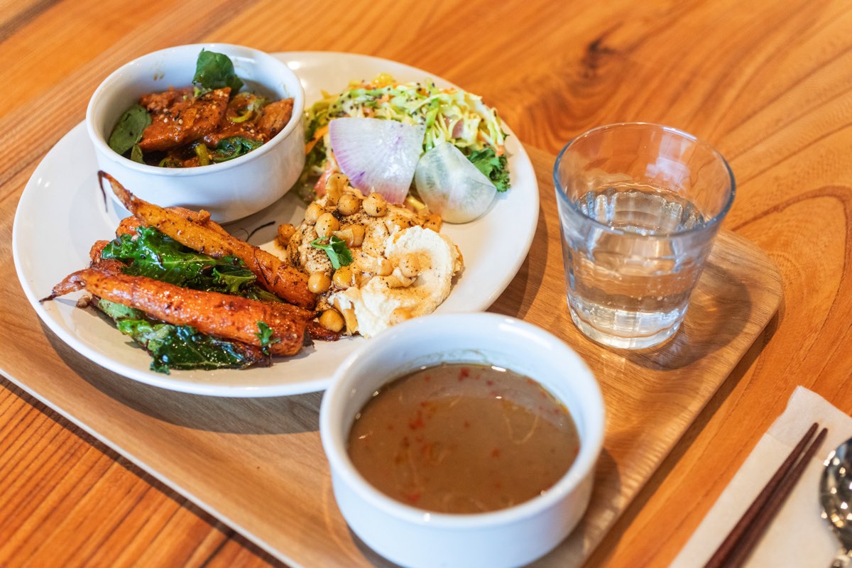 ミルクや卵は使用するいわゆる“ゆるベジ”なデリカテッセンは、自然の美しい色合いに溢れ、ビジュアルから食欲を刺激。