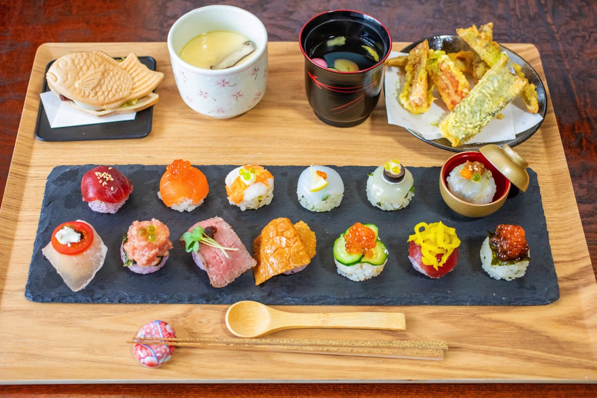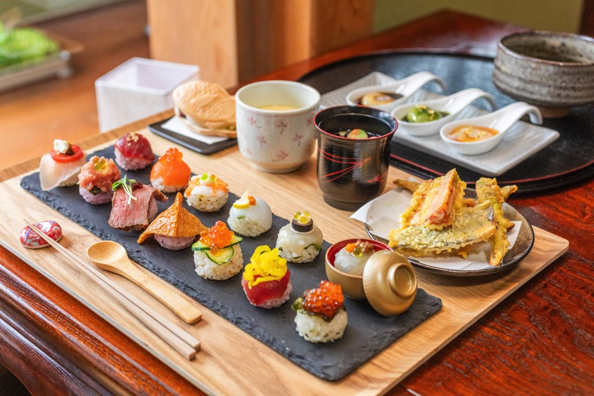 古民家のゆったりした空間の中で見目麗しい手毬ずしを楽しめる、昭和町の「手毬ずし専門店 嬋~せん~」。