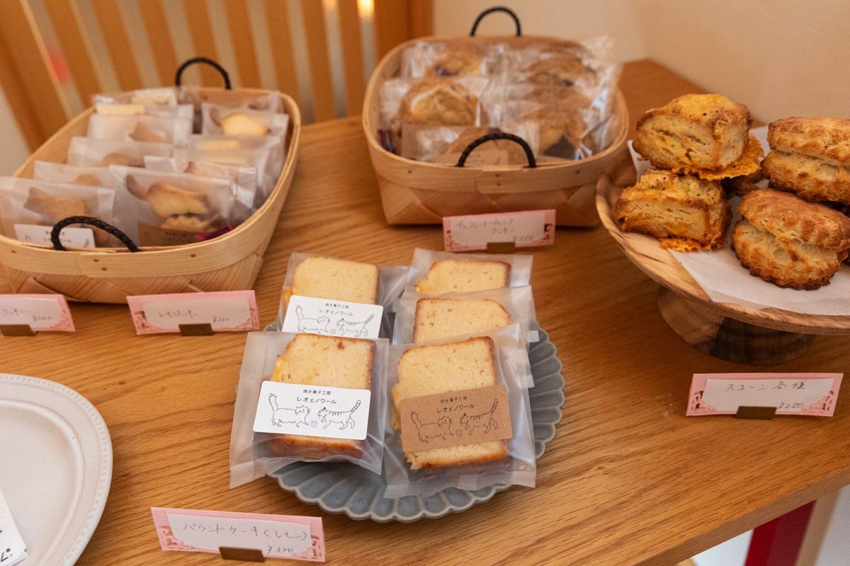 ・スコーン 250円 ・パウンドケーキ 300円 ・チョコレートチャンククッキー 350円 ・レモンクッキー 200円 |