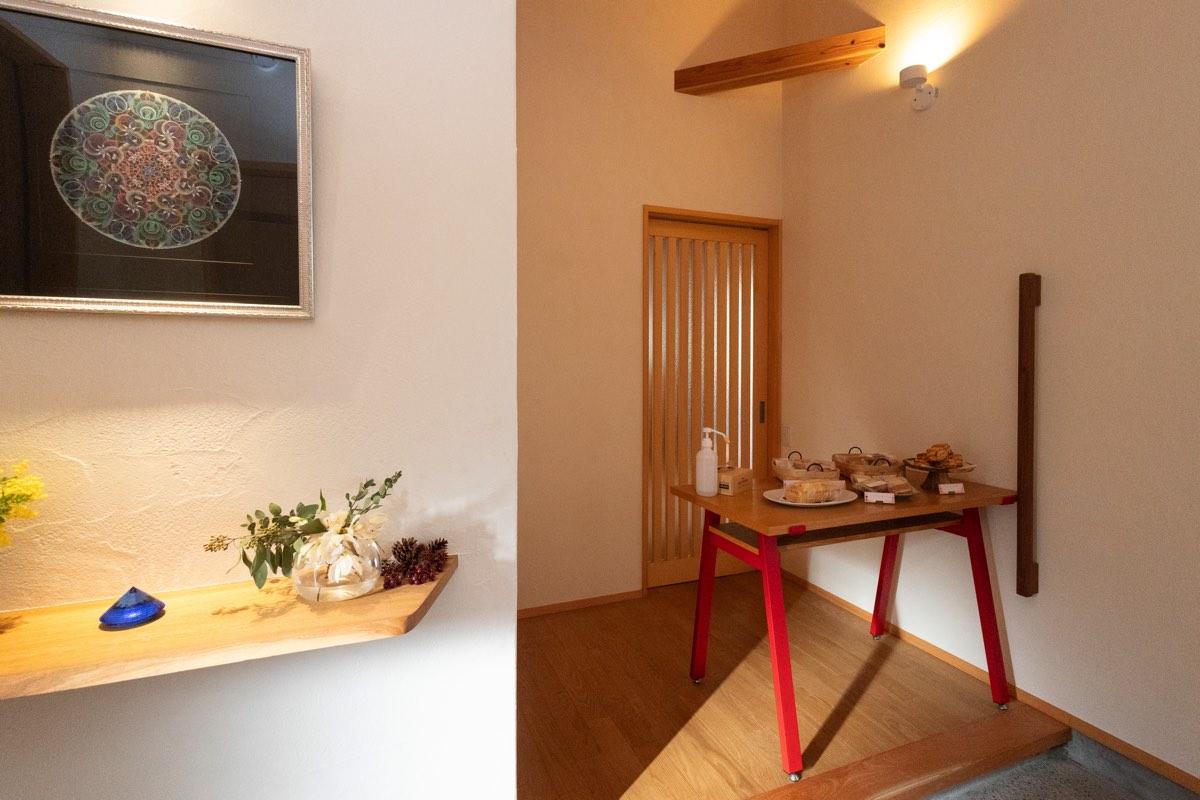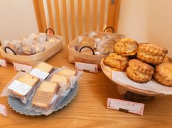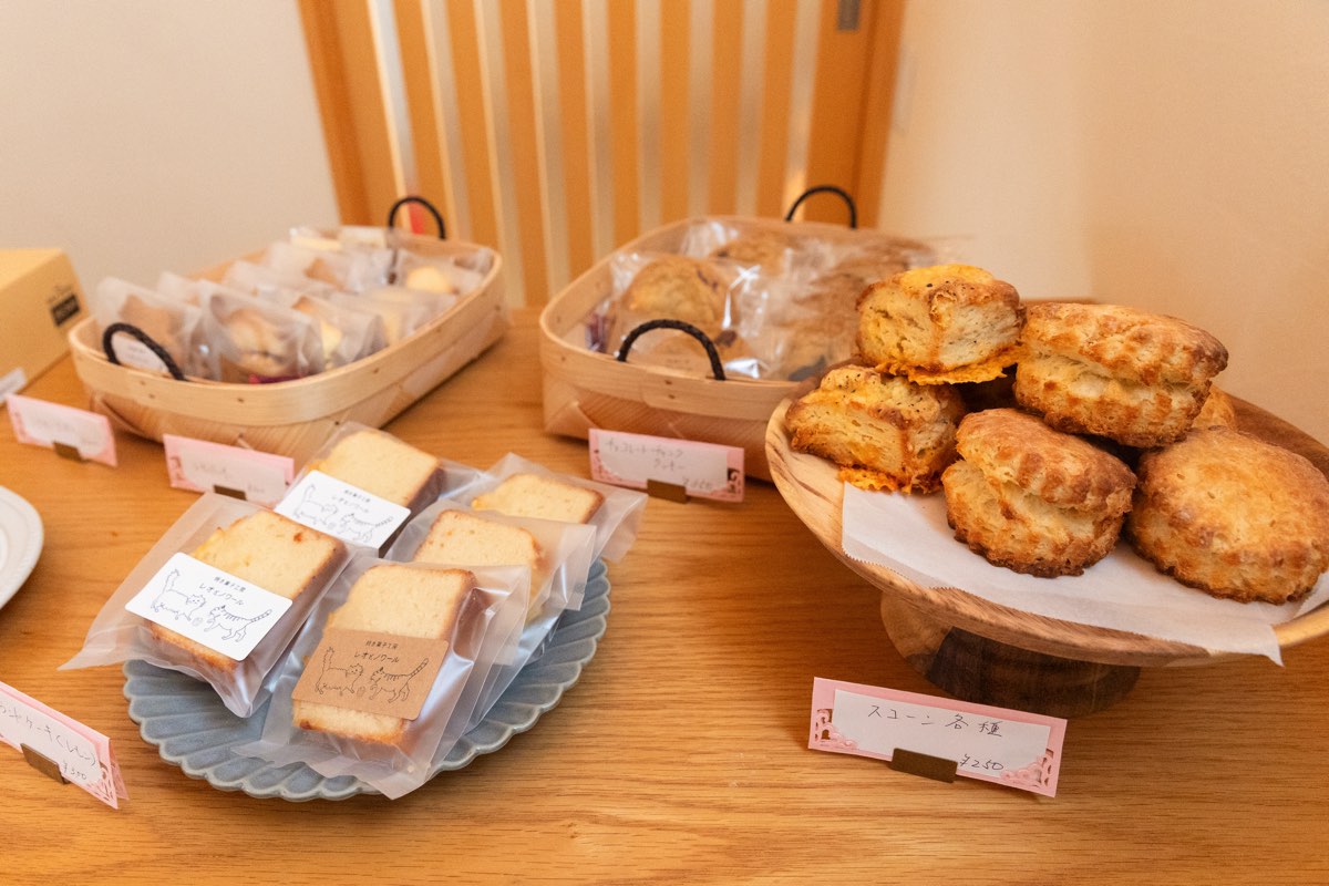 国産小麦や平飼い卵など、素材にこだわったマフィンやスコーン、クッキーなどが一軒家の玄関先に並ぶ。