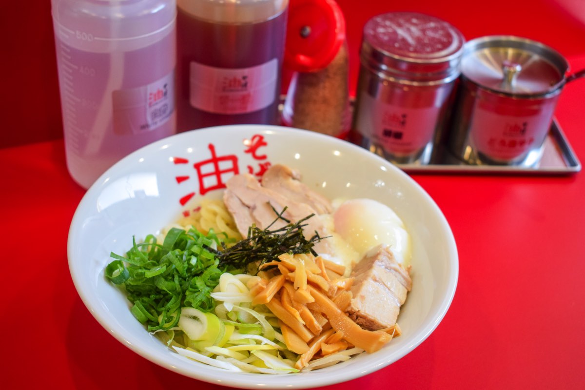特製油そばは温泉たまご付きで、たまごのコクがプラスされ味変に。進化し続ける麺珍亭本舗の味わいを堪能すべし。