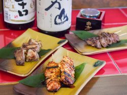 店内で販売する焼きたてパンも。夜は炭火焼き鳥屋さんのメニューのほか、お酒に合うおつまみがいっぱい!飲み放題プランもあり。