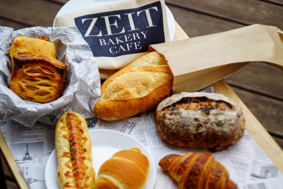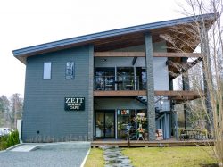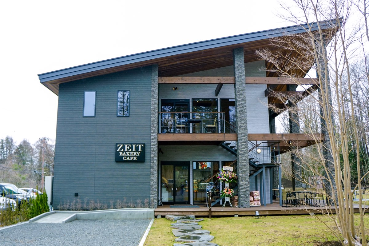 『山中湖湖畔沿いから少し離れた場所に佇む2階建てのベーカリーカフェ「ZEIT BAKERY CAFE」。