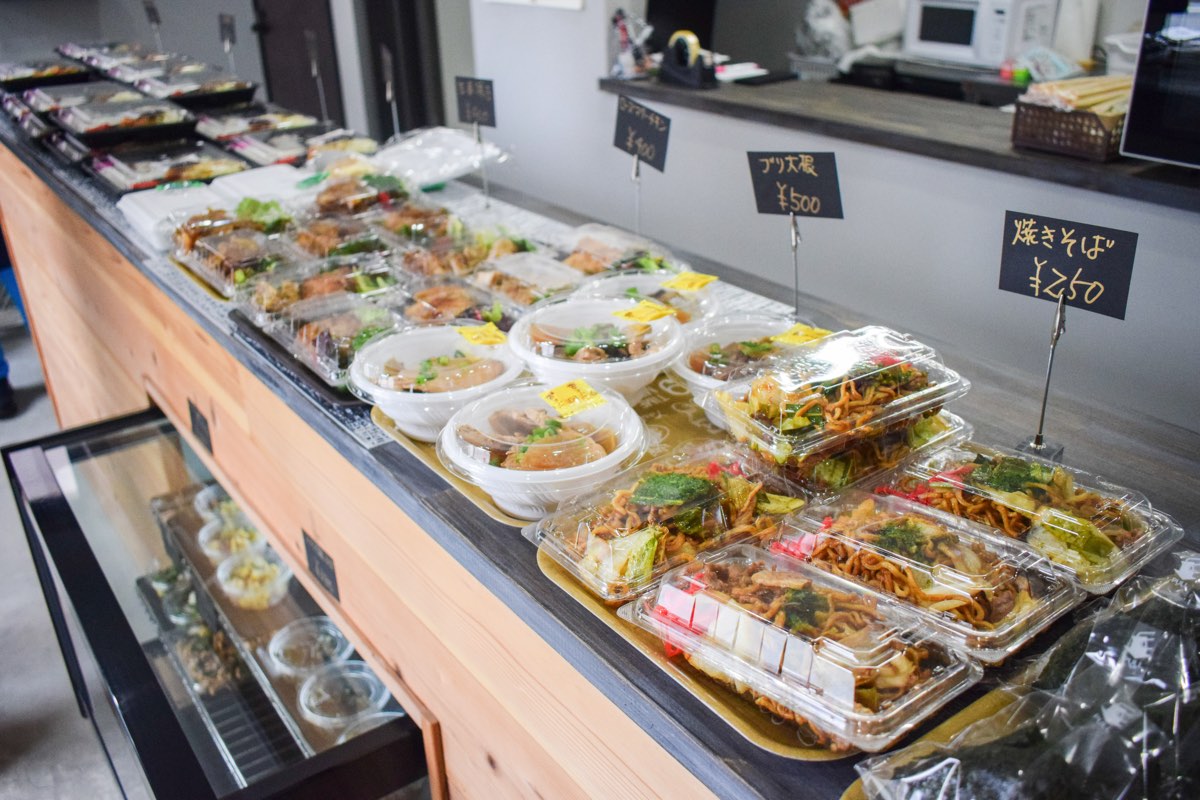 ラインナップはその日の天候や気温などを考慮して毎朝手作りするというからスゴイ。約4種類の日替わり弁当に、旬のものを取り入れたお総菜やおにぎりまで揃う。