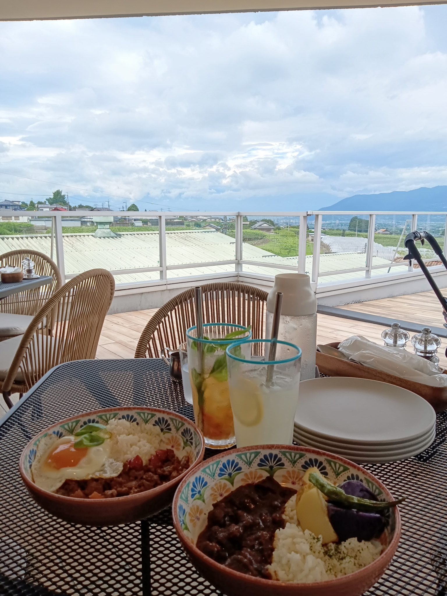 景色が素晴らしく、テラス席に座ると海外にいるような気分に浸れる。日曜日10時半に行ったら誰もいなくて開放感抜群!11時過ぎから続々とお客さんが来たので、朝イチがのんびりできそう。赤ワインで煮込んだカレーはコクがあり奥行きのある味わいで、家庭のカレーとは一線を画す逸品でした。食後には飲めるフレンチトーストをシェア。これはほんとに美味しい!絶対食べてみる価値アリです。運転だったので残念ながら飲めなかったけど、ビールが美味しそうでした。