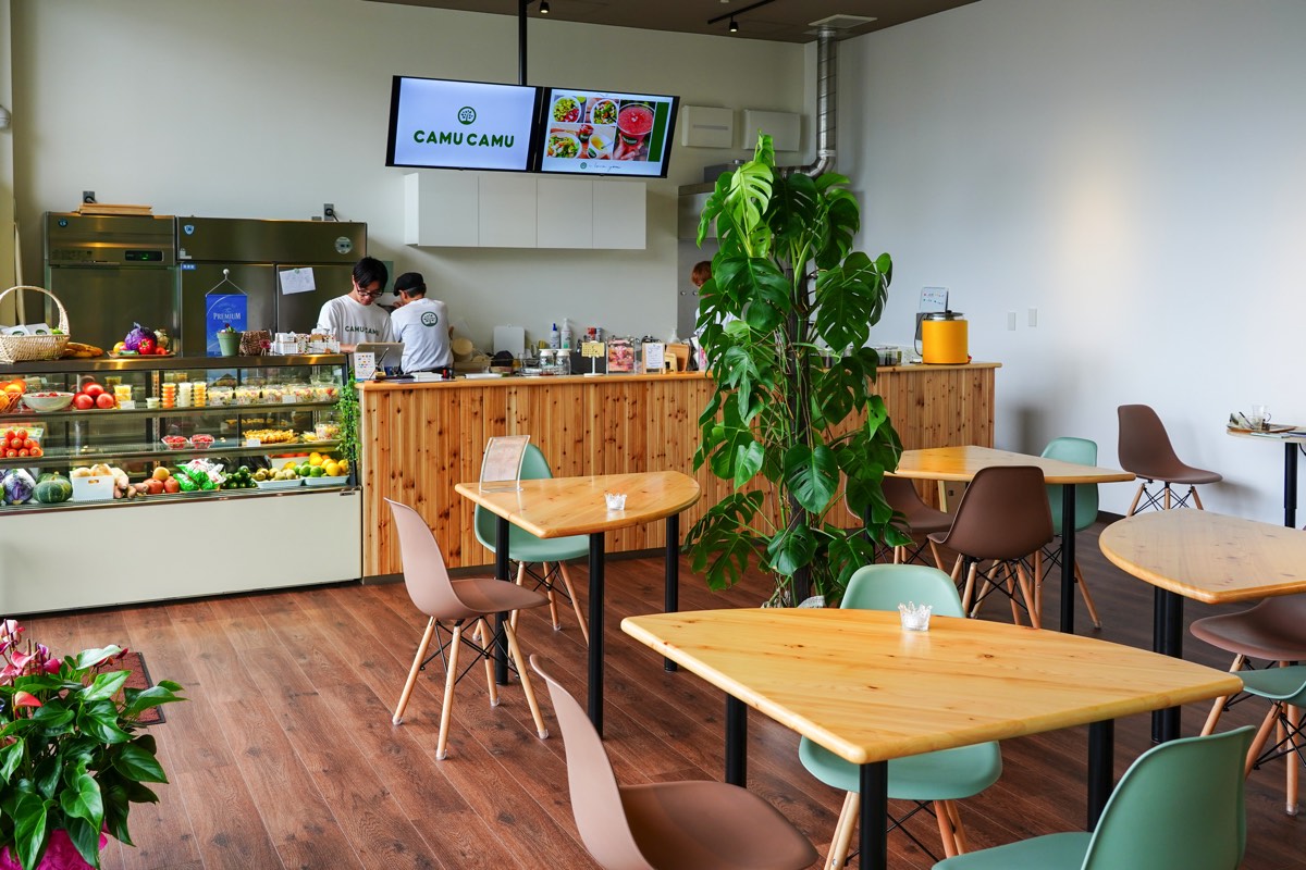 甲府市徳行ウェルネスゾーン内にある「CAMUCAMU」は、新鮮な野菜を使ったランチやディナーが楽しめるカフェ&バル。