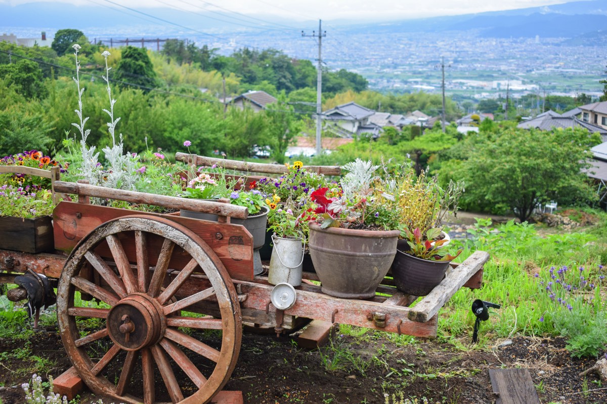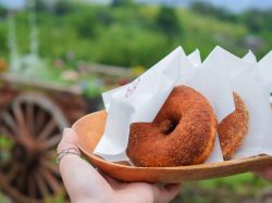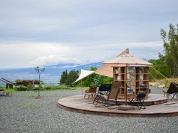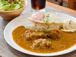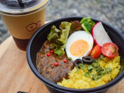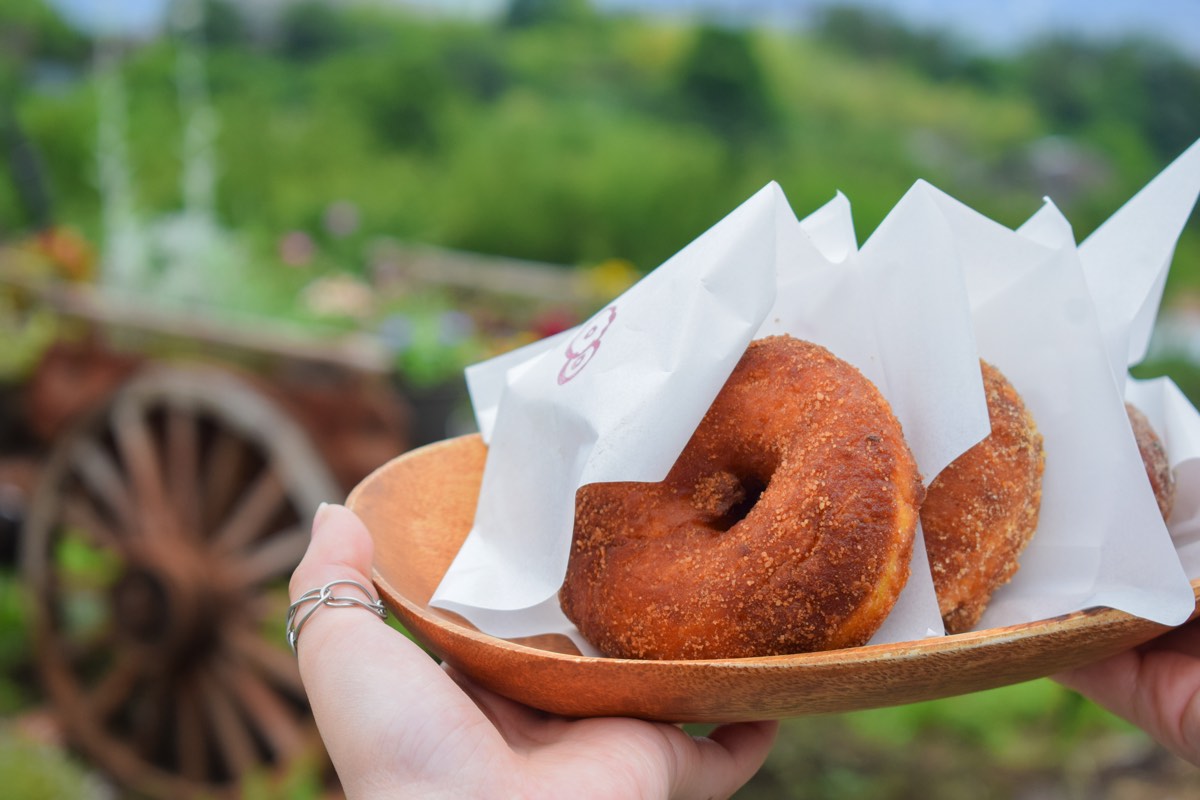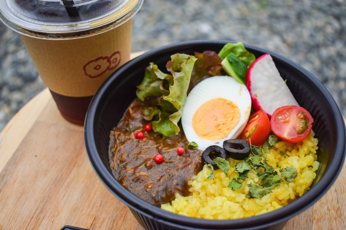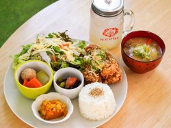 鶏肉をたっぷり使いスパイスの旨みが効いた辛くないスパイスカレーや、生地にかぼちゃを使ったもちもちのこだわりドーナツなど、ここならではの絶品フードをお供に大自然と甲府盆地を一望する最高のロケーションを楽しもう。