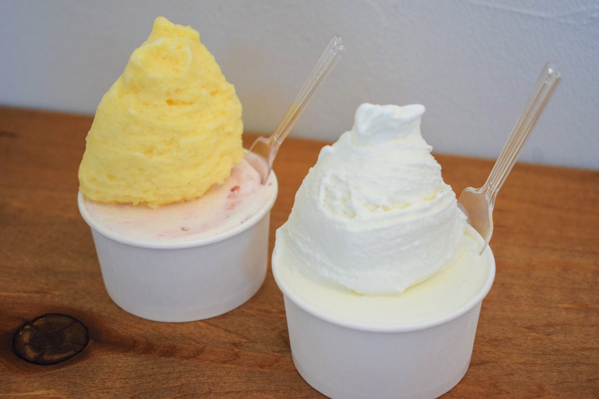 韮崎市本町にある「ジェラート屋mucu」。“生産者さんが作った大切な素材たちをジェラートにして届ける”をコンセプトに、保存料・着色料・卵不使用の手作りジェラートが楽しめる。
