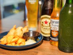 料理には「フィッシュ&チップス」や「ソーセージ盛り」などのおつまみから、「ほうとうパスタ」や「チーズバーガー」などのメインまで、ペアリングするメニューがラインナップ。水、金曜日にはお弁当やお惣菜の販売も。