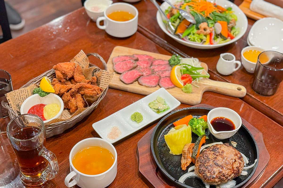 【ランチ】 ・甲州牛100%バーガー 1,848円 ・甲州牛チーズバーガー 2,068円 ・甲州牛ベーコンチーズバーガー 2,178円 【ディナー】 ・厳選素材の甲州牛100%ハンバーグ 1,848円 ・甲州牛ローストビーフ 2,178円 ・甲州牛のトマト煮込み 858円 ・彩り野菜のパントバーグサラダ 968円 ・ストロベリーシェイク 693円 ・ばななシェイク 693円 ・パン各種 |
