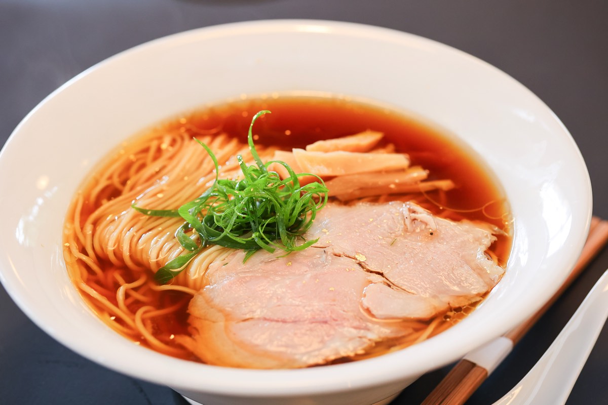 ラーメンは中華そば(しょうゆ・塩)と鶏白湯の3種類。地鶏ガラを3種類ブレンドした細麺ストレートの上品な中華そばは洗練された味わいが光る。