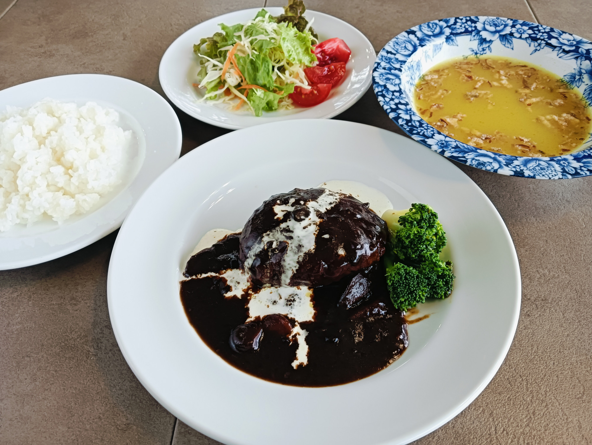 ・スパイスハンバーグ【スープ・サラダ・ライス又はパン付き】 1,980円
