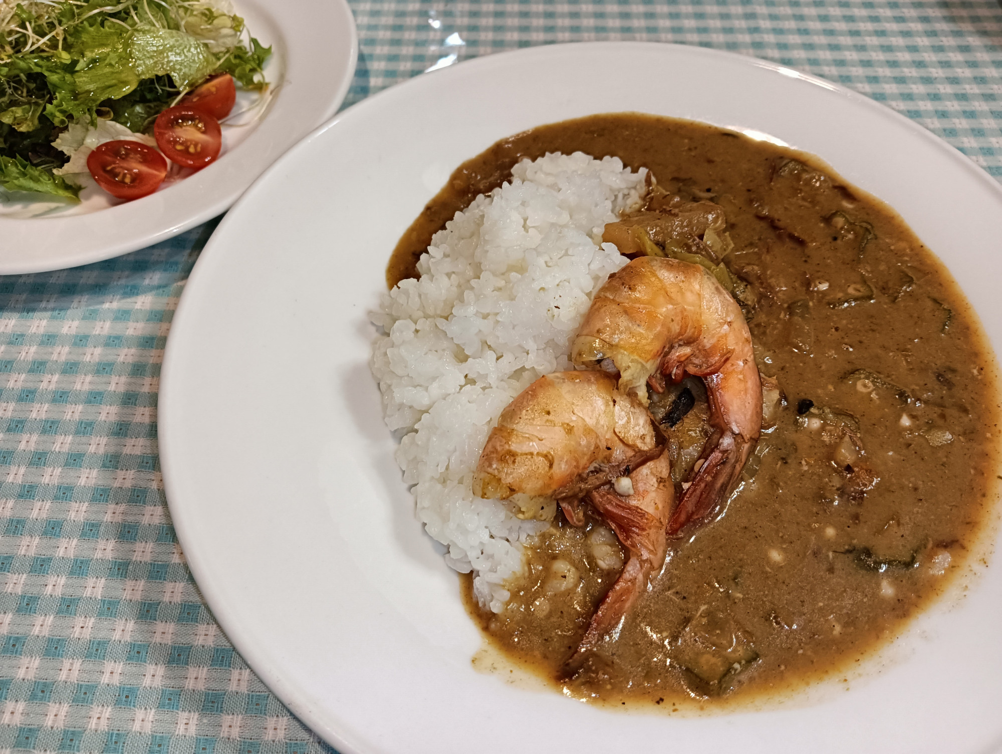 今週末のモーニング 『シュリンプカレー』やります! 当店直輸入の貴重なスパイスたっぷり この辛さが癖になる! 野菜もたっぷり溶け込んだ 健康、特製スパイスカレーに プリップリの大海老2... -