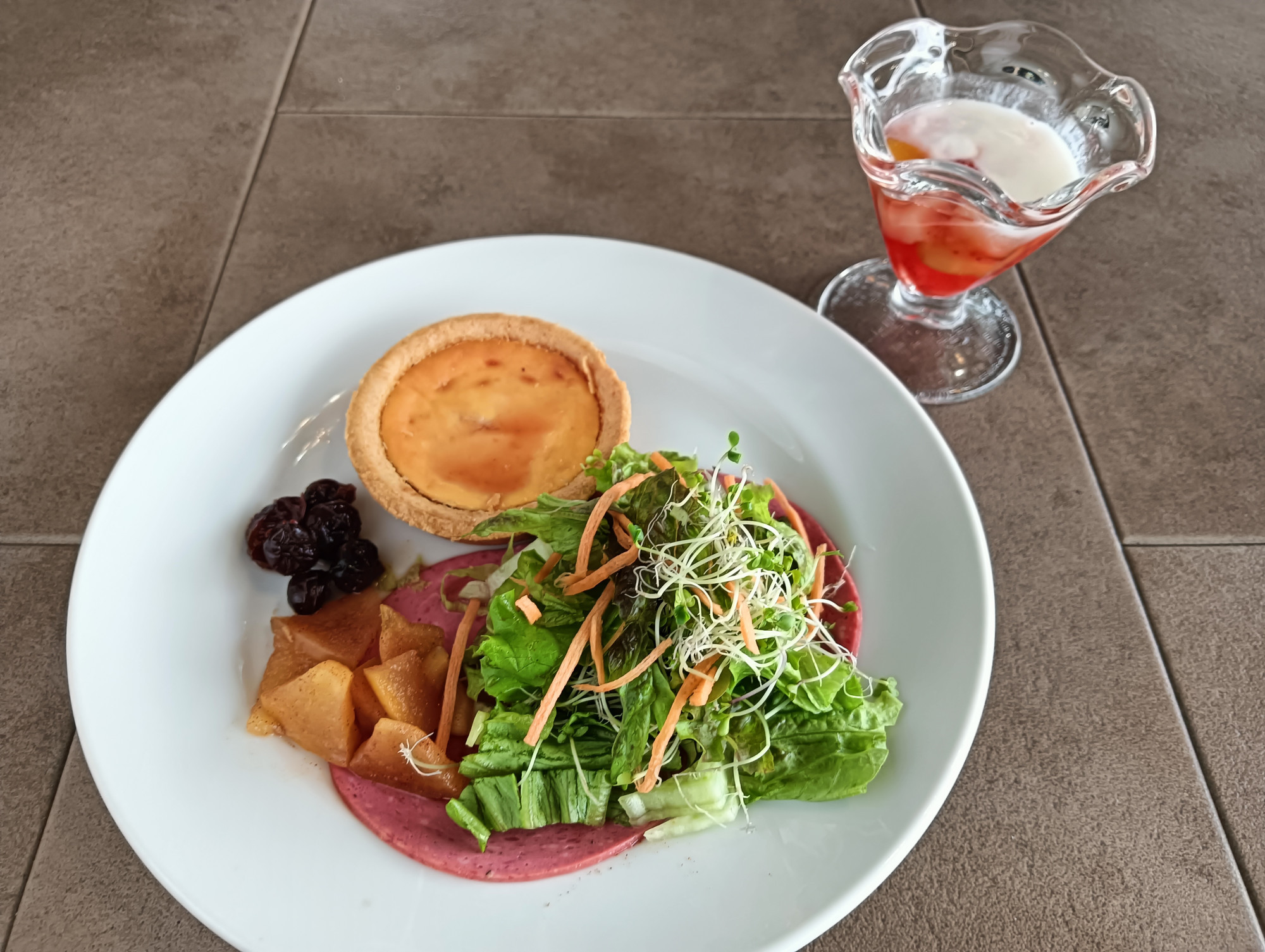【本日のモーニング】880円(税込968円) ・本格濃厚チーズタルト ・サラダ ・ハム ・アップルシナモン ・クランベリー ・フルーツカクテル お食事ご注文で コーヒー、紅茶は20... -
