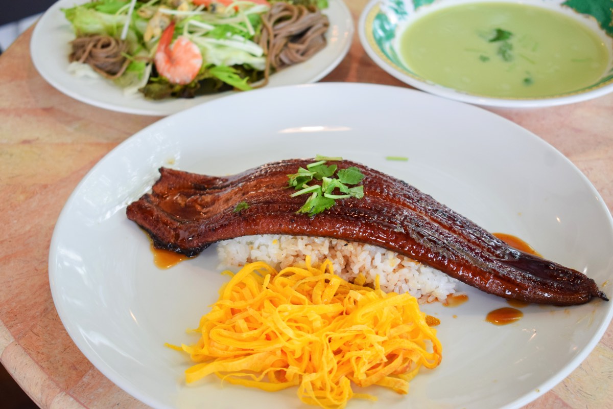 ここの自慢はどどんと大きな鰻が乗った鰻ランチ!その時々で一番おいしいニホンウナギを日本初の無煙無臭の鰻窯で焼き上げ、赤ワインベースのコク深いタレを絡めたここだけの味わい。ふっくらジューシーでまるでステーキのよう!