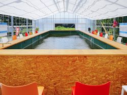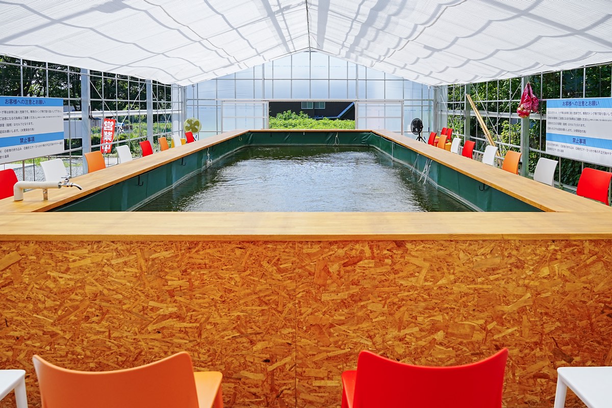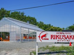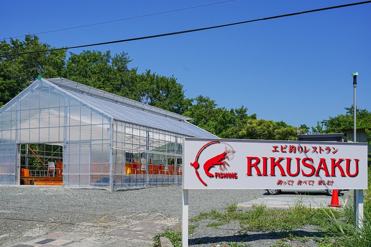 甲斐市岩森の「海老釣りレストラン RIKUSAKU」は、高級食材オニテナガエビの養殖所「株式会社 陸作」が運営する体験型レストラン。エビ釣り体験や併設しているレストランでの食事が楽しめる。