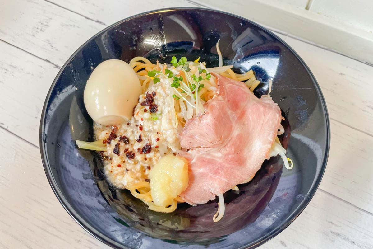 完全オリジナルの目新しい油そばが堪能できるとすでに大人気!豚骨をじっくり煮込んだスープとにんにくがたっぷりのった「王道スープ油そば」や豚骨や鶏油、濃いめの醤油で作る「家系油そば」、山椒がきいたピリ辛と激辛で選べる「特製担々油そば」がラインナップする。