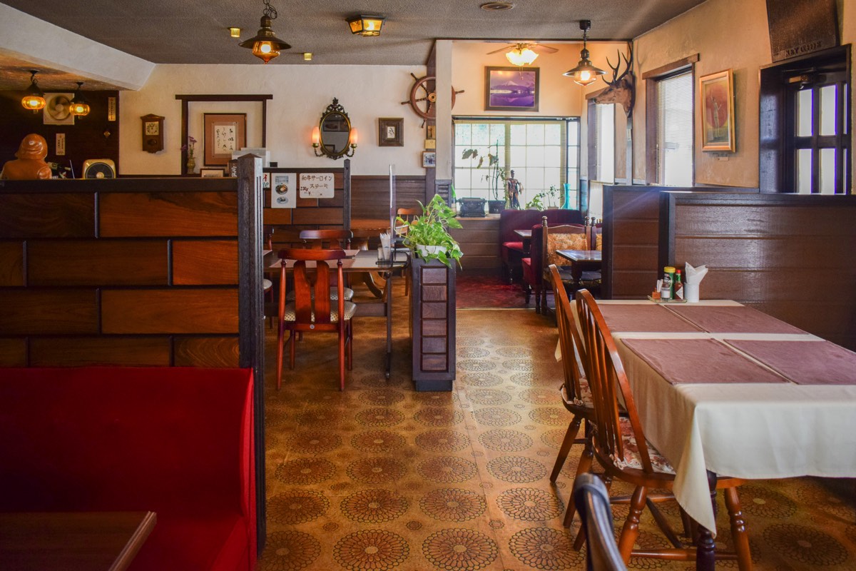 甲斐市西八幡にて約50年の歴史を持つレストランらんぶる。1歩足を踏み入れると、オレンジライトの優しい灯に包まれ、ボックス席やインテリアなどノスタルジーな雰囲気が広がる。