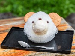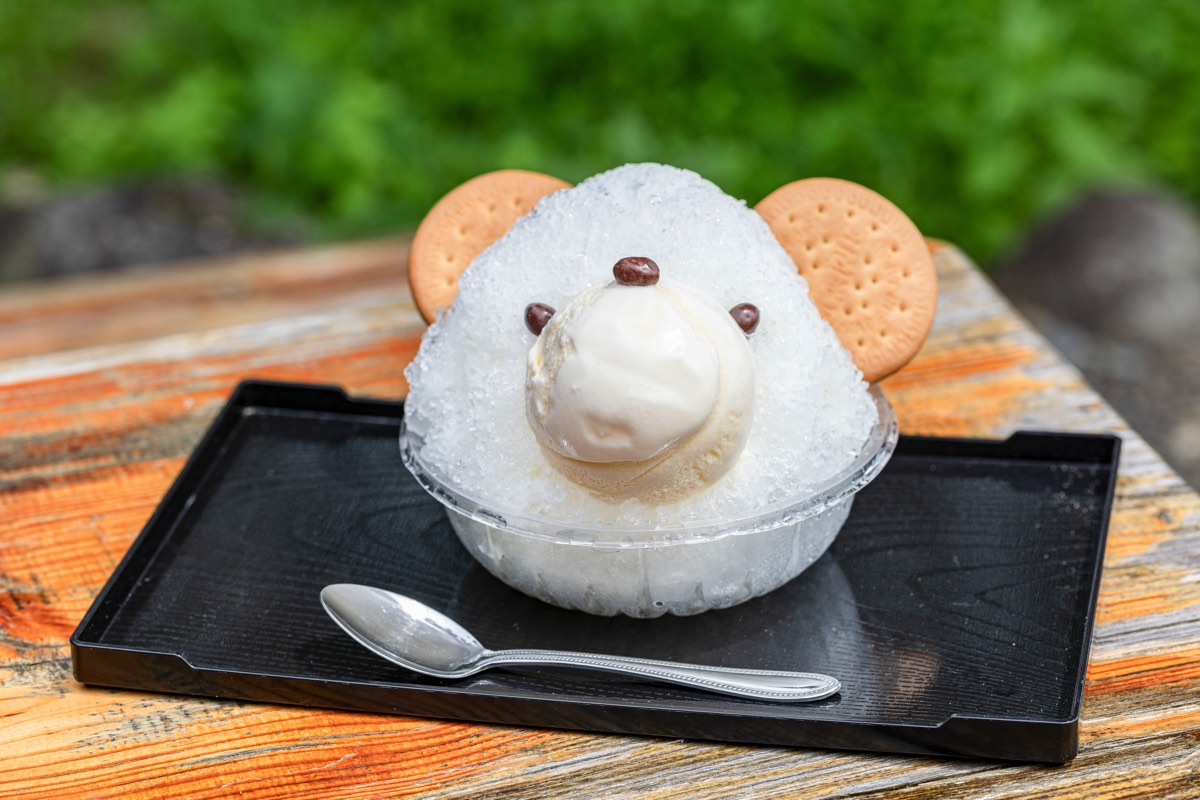 可愛いぶたのプリンや白くまのかき氷などフォトジェニックなスイーツから抹茶付きのもちもち団子まで、魅力溢れる甘味が揃う。季節によりメニューが変わるが、カレーなどの軽食も。