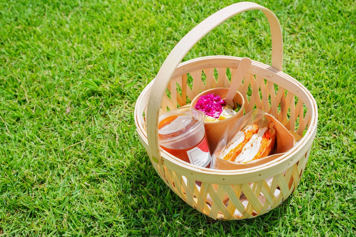 また、カゴとレジャーシートのフリーレンタルがあり、fumottoの芝生エリアでピクニックすることも。