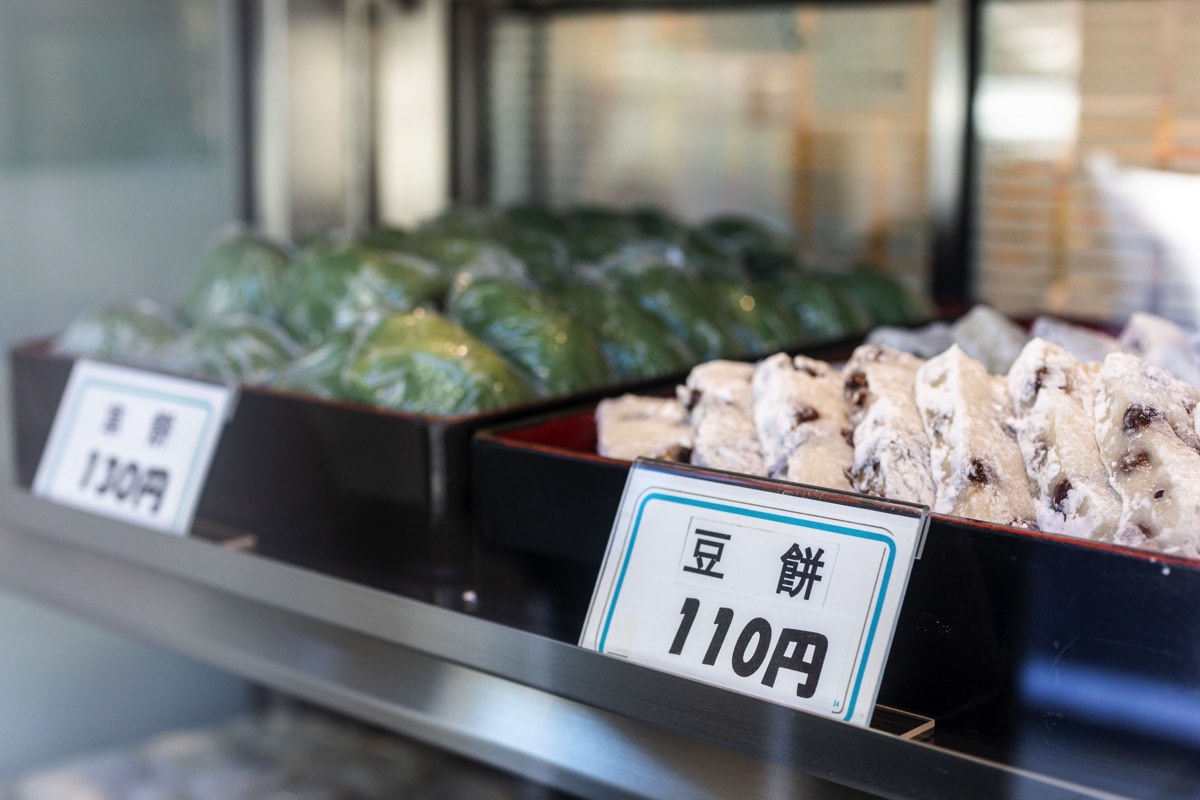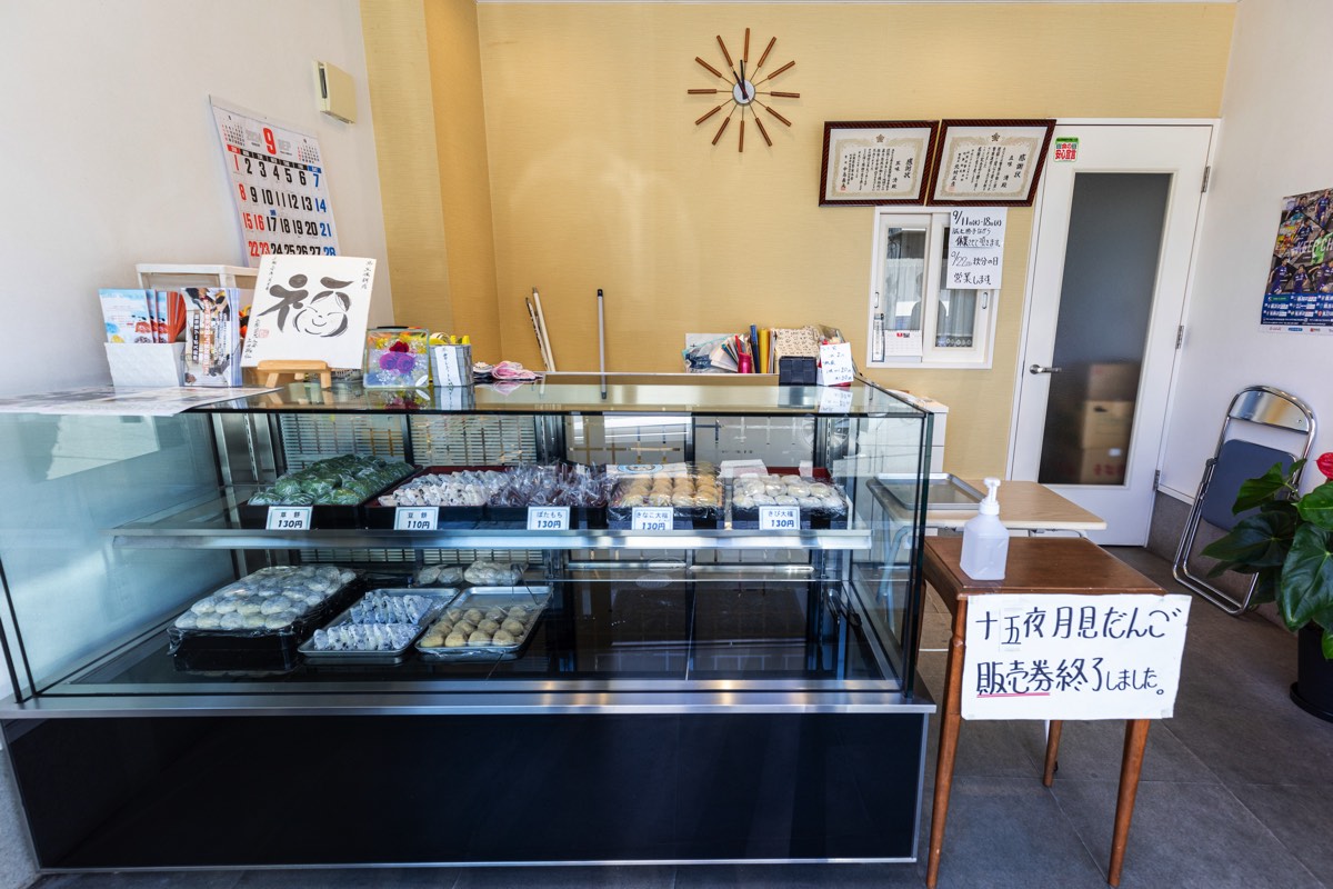 ・きび大福 130円 ・きなこ大福 130円 ・草餅 130円 ・ぼたもち 130円 ・豆餅 110円 ・焼きだんご 100円 ・いなり寿司 100円 |