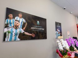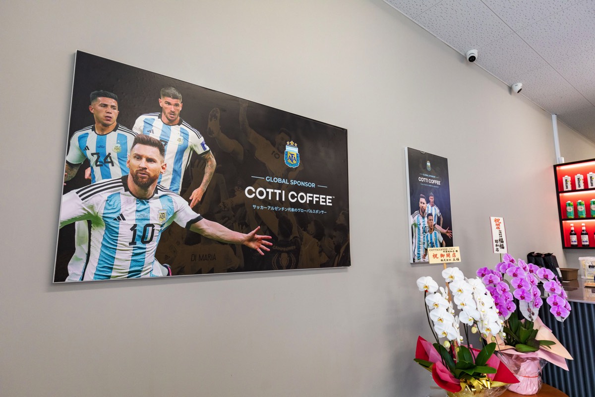 イチオシは深煎りコーヒーにココナッツミルクの「ココナッツラテ」。サッカーアルゼンチン代表のグローバルスポンサーということでユニフォームカラーの「パンパブルーのココナッツラテ」もぜひ。