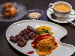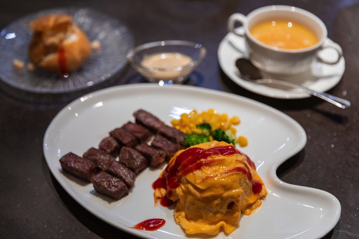 また、シャトレーゼテラス田富の寛では初のお子さまコースもご用意。鉄板で仕上げる絶妙な柔らかさの卵がチキンライスを包む。
