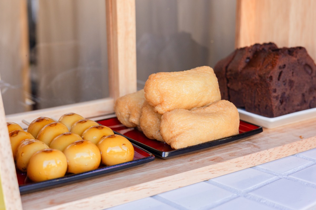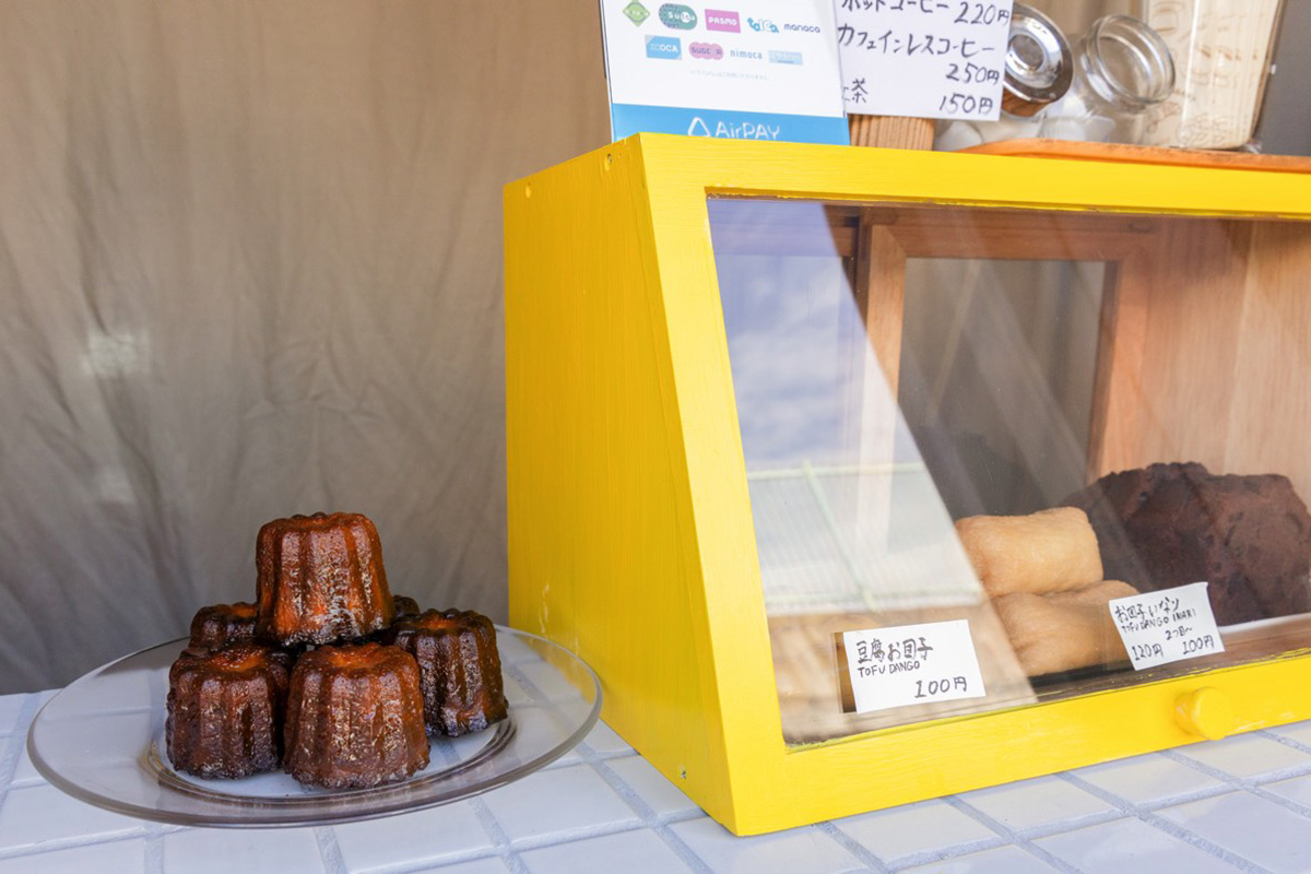 豆腐の水分で作ったお団子や、いなりの中に豆腐お団子が3つ入ったじゅわもち食感が楽しいお団子いなりをはじめ、米粉のパウンドケーキや米粉のカヌレなどがラインナップ。