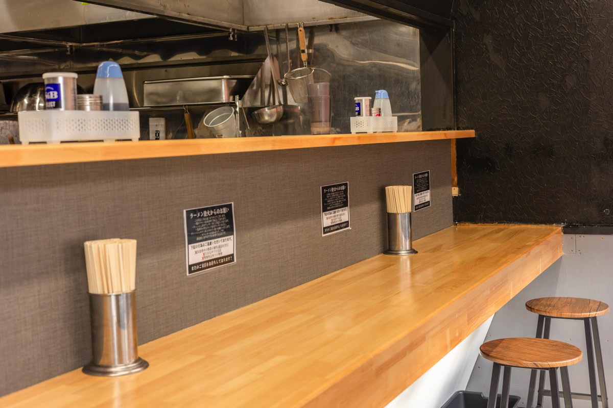 富士山麓の澄んだ水で作った平打ちのもちもち自家製麺に、醤油感のしっかりしたスープが自慢。