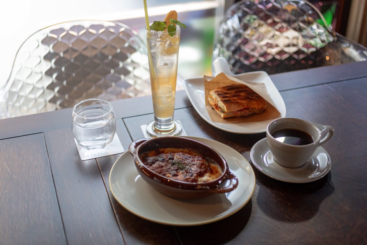 ・ミラノ風ドリア 1,200円 ・キューバサンド 880円 ・あんみつ 500円 ・みたらし団子 280円 ・クラフトジンジャーエール 550円 ・ハンドドリップ 550円~ |