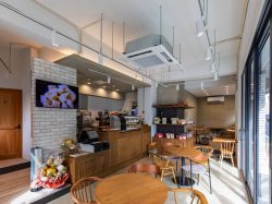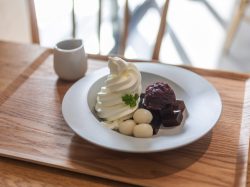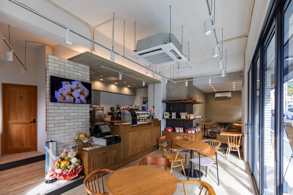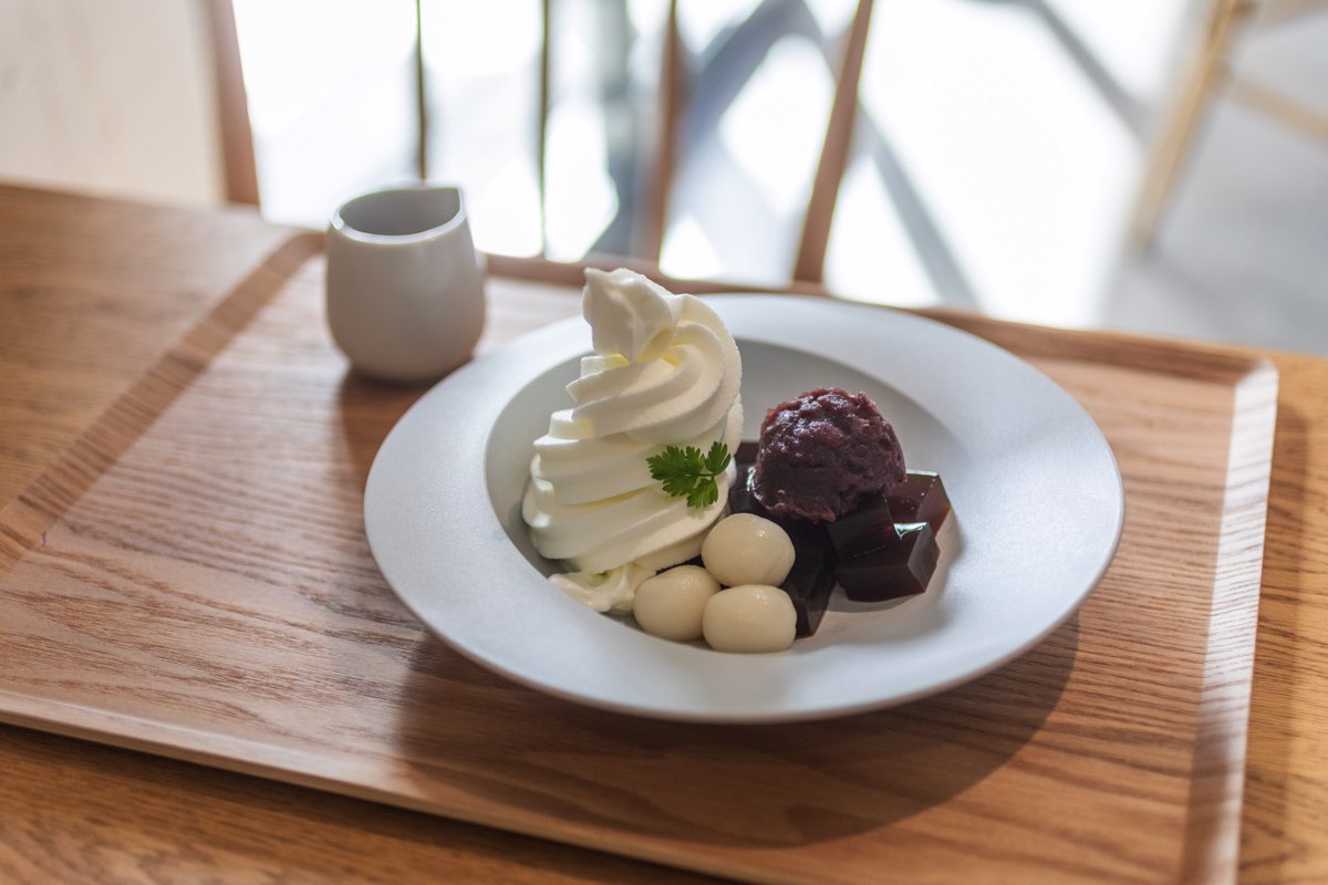 白州工場で作る名水仕込みの金精軒のお餅や餡を使ったオリジナルスイーツをイートインで楽しめる。和スイーツに合うようオリジナルブレンドしたコーヒーは、焙煎を韮崎で行うロースター「コクテール堂」の豆を使用。テイクアウトではアレンジどら焼きのほか、生信玄餅などの金精軒商品が購入できる。