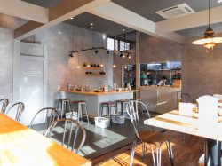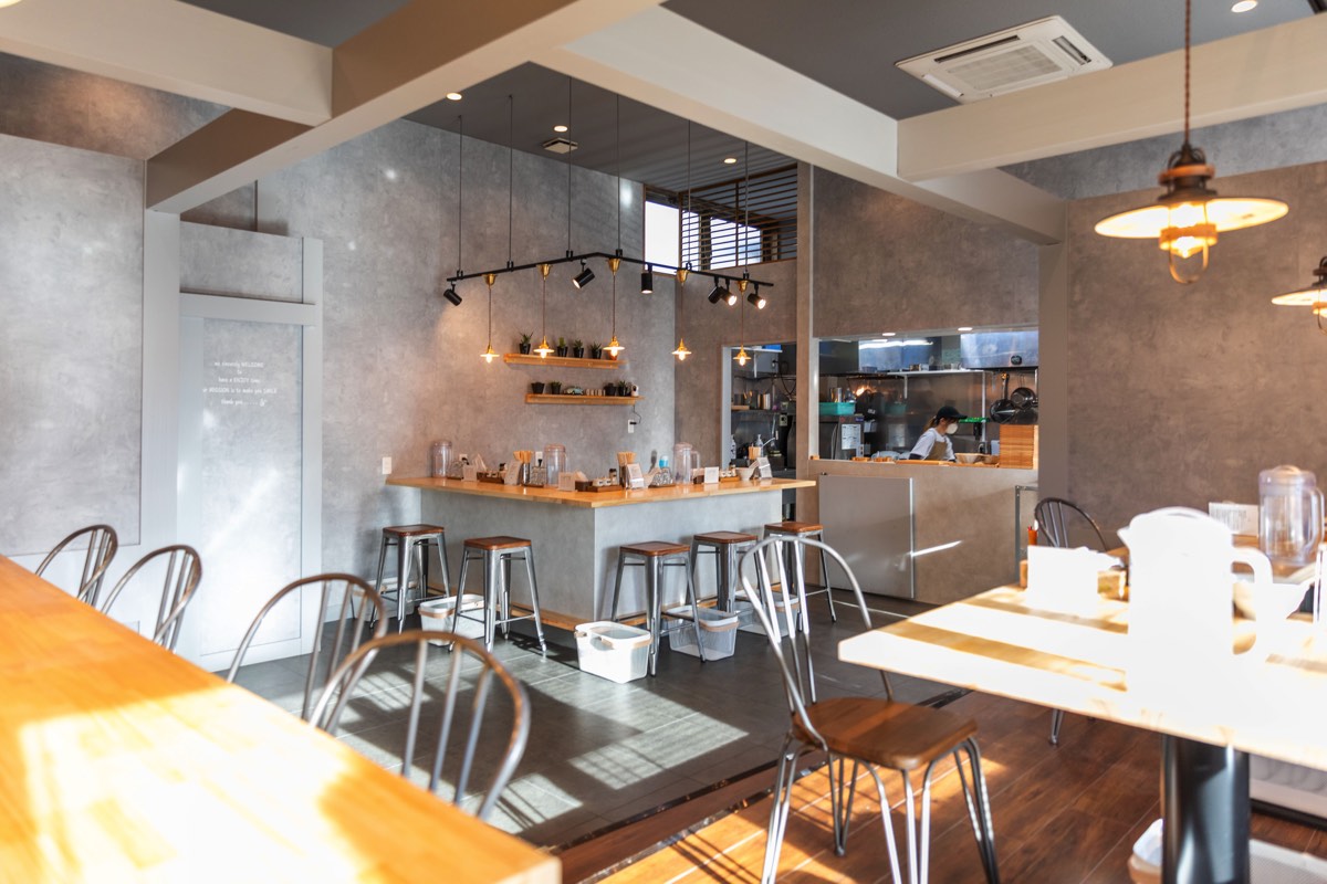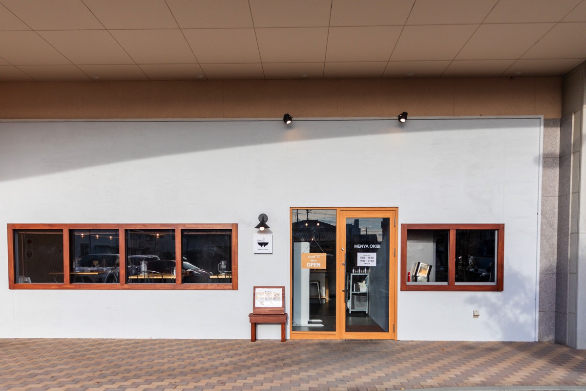 「MENYA OKIBI(メンヤオキビ)」は甲府市徳行のウェルネスゾーン一角にあるおしゃれなラーメン屋さん。まるでカフェのような明るくスタイリッシュで、女性ひとりでも入りやすい。