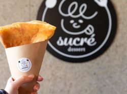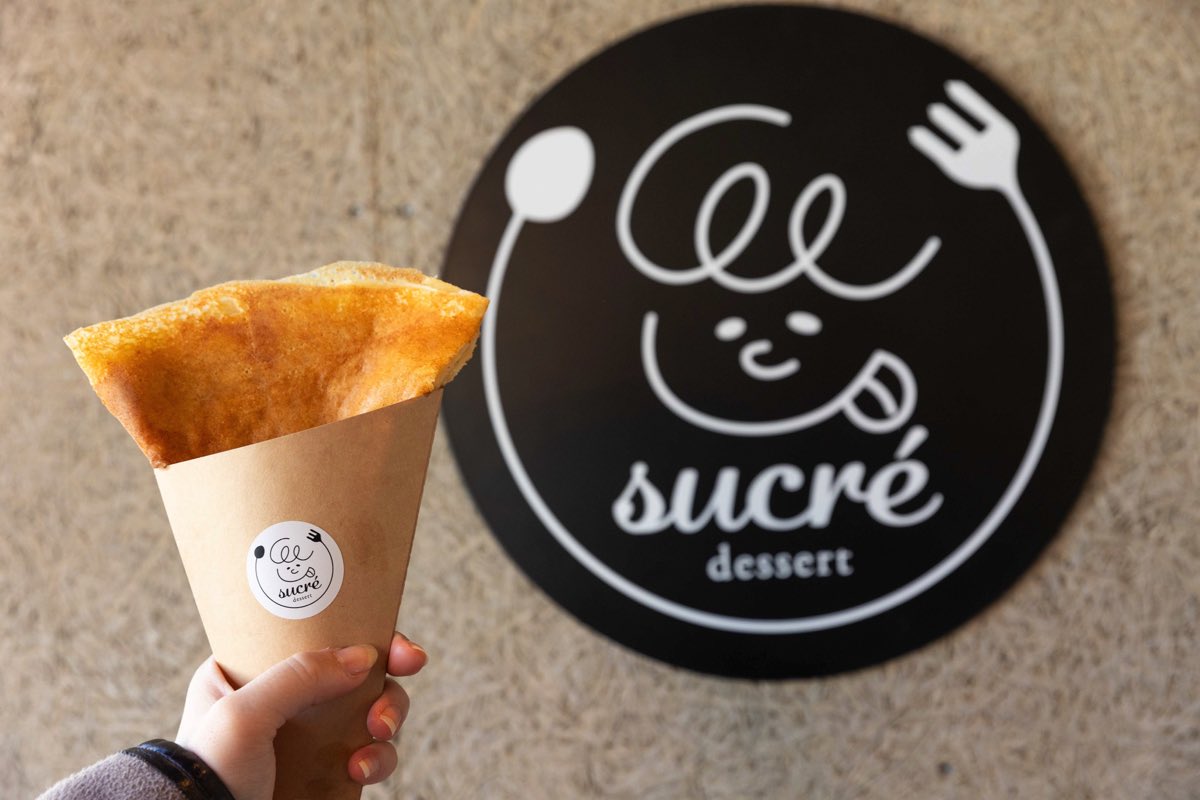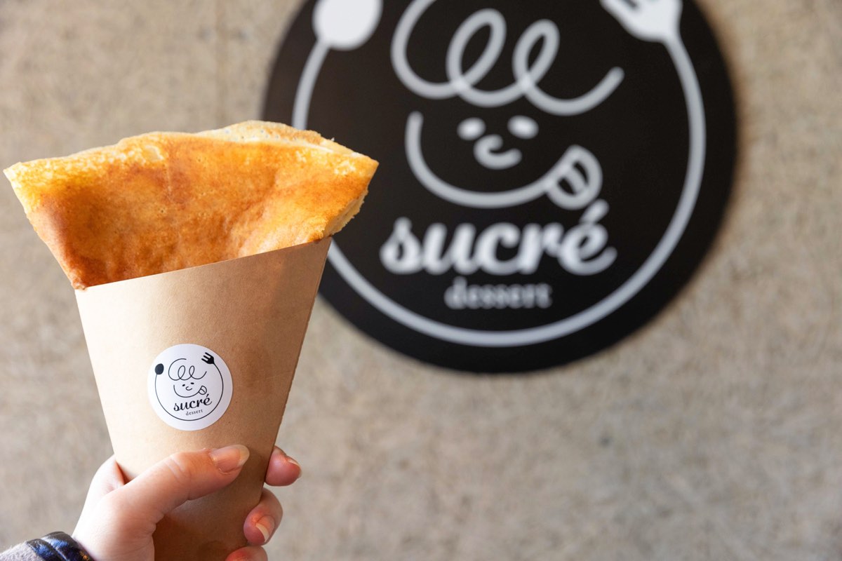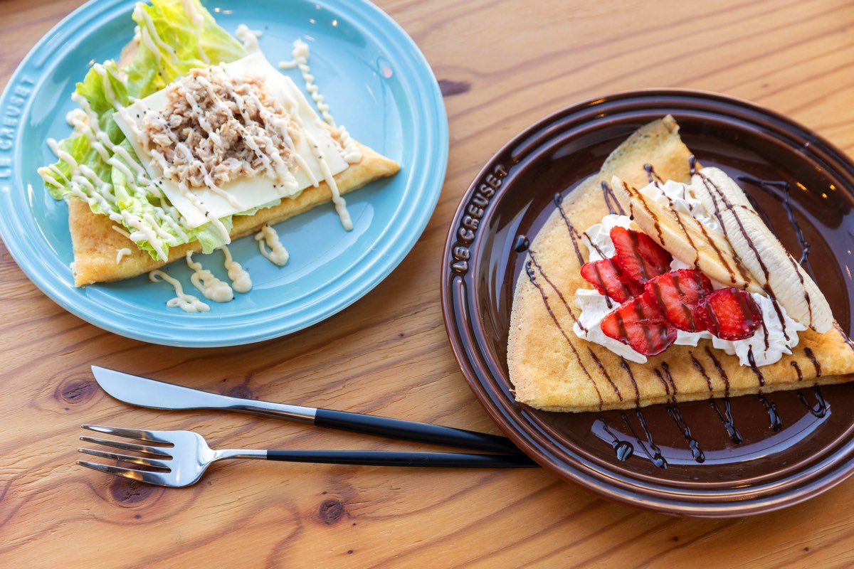 メニューには、シュガーバターやヌテラなどの甘い系から、ツナサラダやハムレタスチーズのお食事系まで約8種類がラインナップし、子どもから大人まで馴染みやすい味わいに仕上げる。