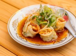 パリパリの羽根付焼餃子は中国のスパイス「五香粉(ウーシャンフェン)」を餡に入れたり、もっちもちの水餃子は皮からすべて手作りしたり、それぞれ違った味わいが楽しい!