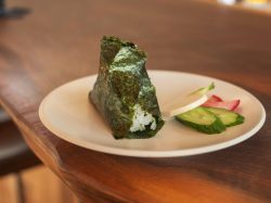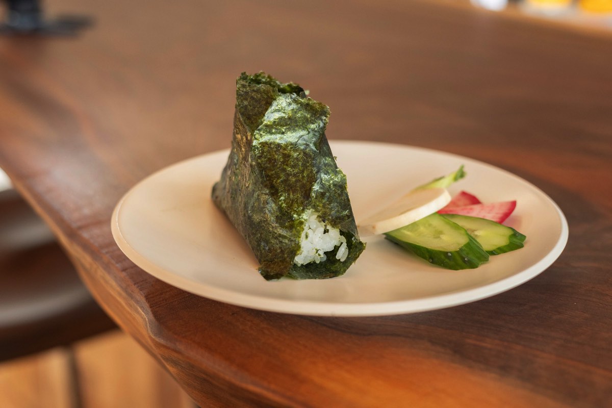 やさしい風味の粒感を感じるおにぎりをプレートで味わうことも。