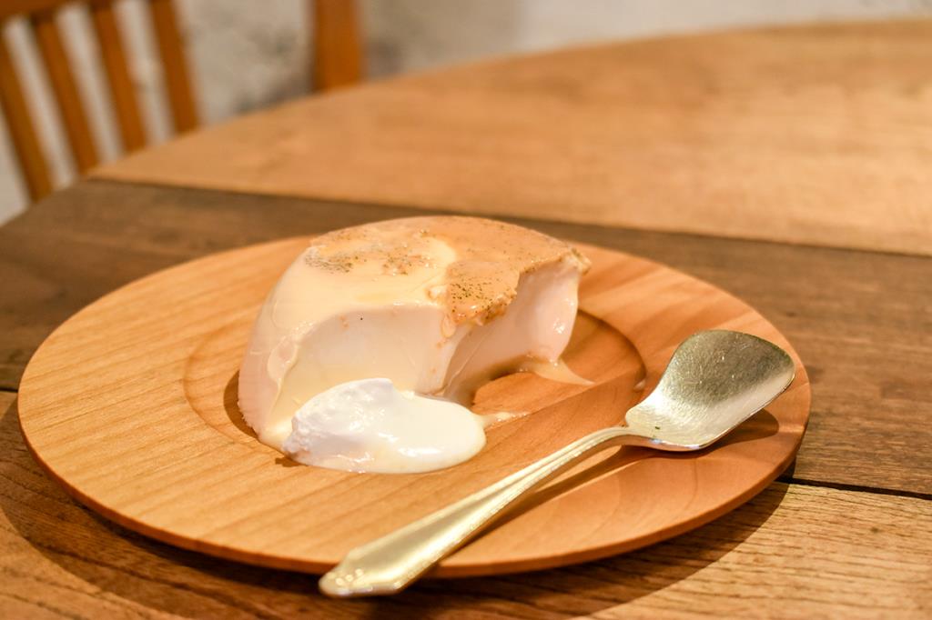 自家製のキャラメルプリンはとてもなめらかで口に入れた瞬間とろける。ぜひ味わってほしい。
