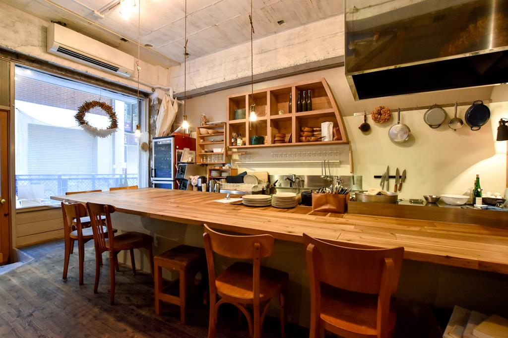 macaroni甲府市上石田のテナントの一角に佇む、小さな鉄板焼き屋さん「macaroni」シンプルモダンなカウンタ... -