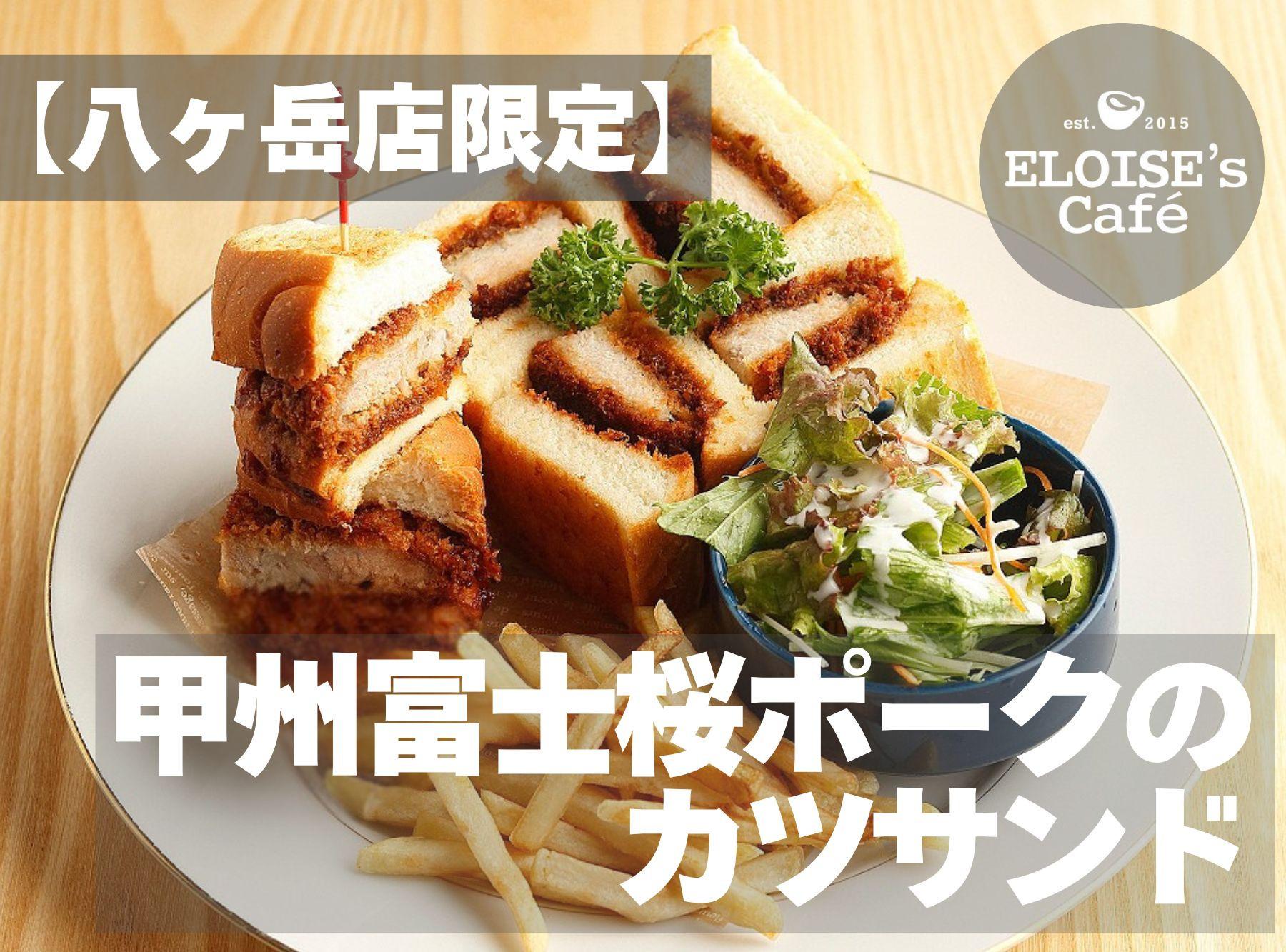 こんにちは✨ ELOISE’s cafeでは店舗ごとに 限定メニューも提供中。 八ヶ岳店限定のイチオシは 甲州富士桜ポークを使ったカツサンド! からしバターが効いた ボリューム...