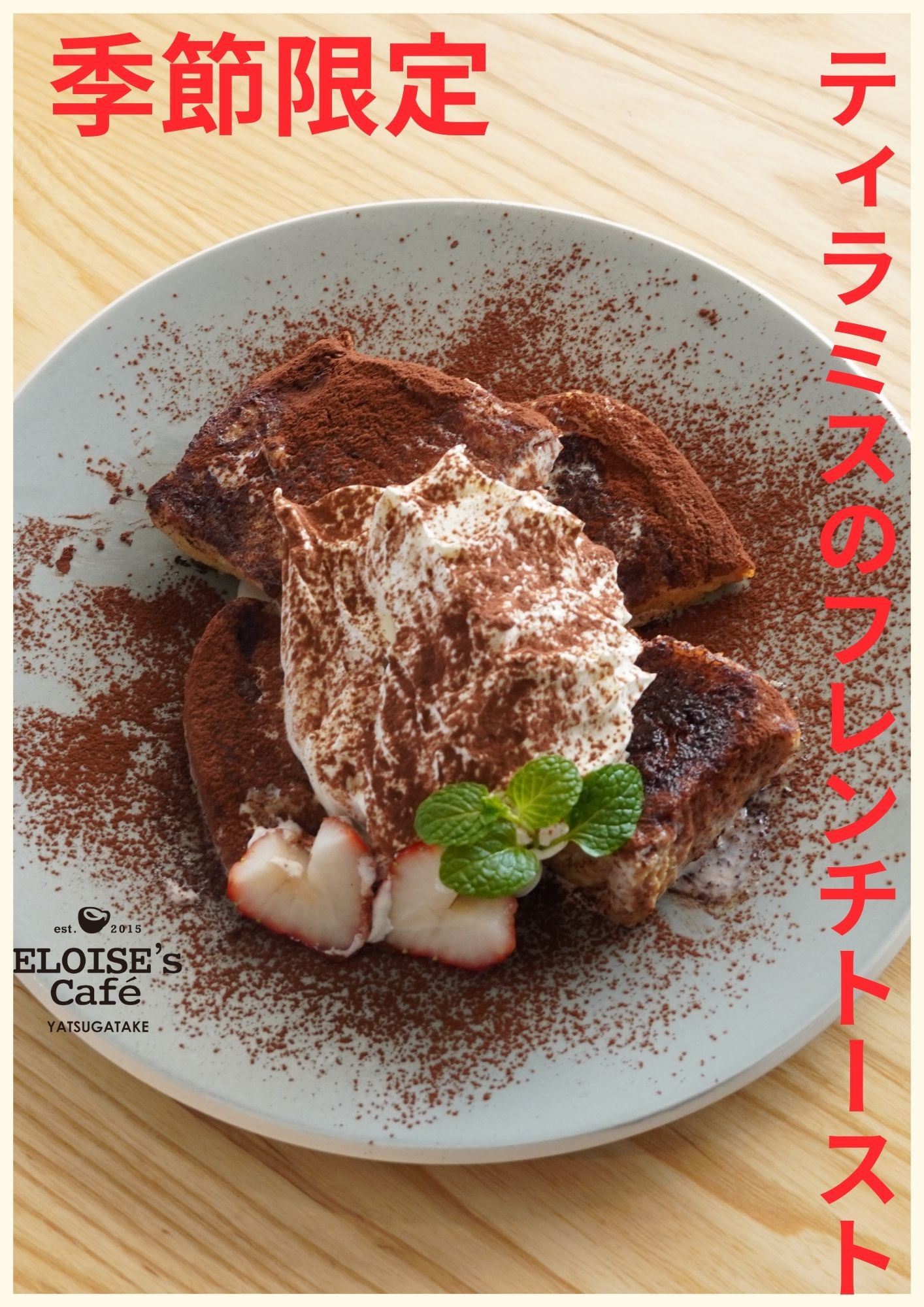 皆様こんにちは☺️ ELOISE’s cafeでは2月限定フレンチトースト 大人のティラミスフレンチトーストが始まりました! コーヒー風味のフレンチトーストに バニラアイスとたっぷりの...