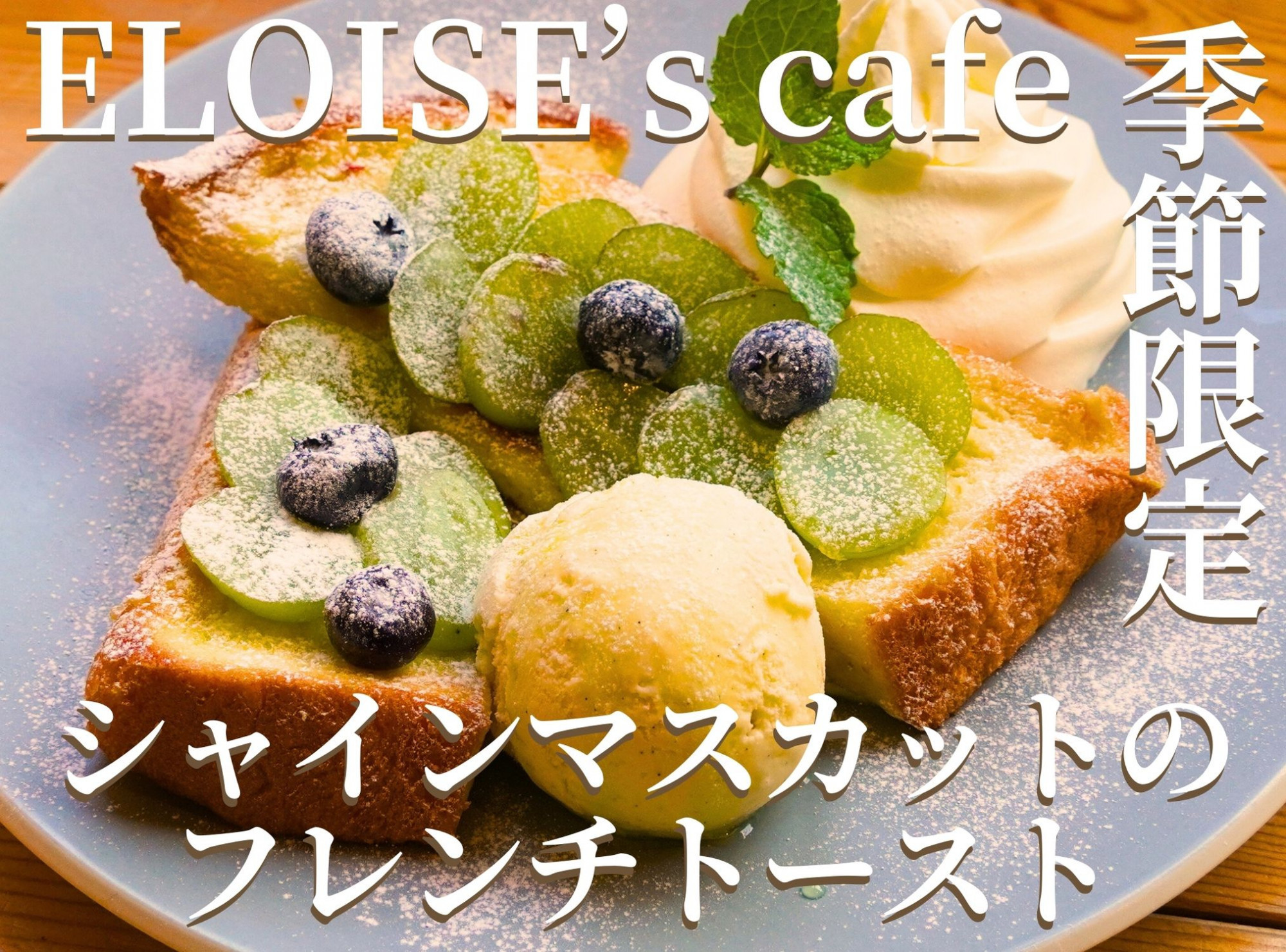ELOISE's cafeでは ただいま季節限定シャインマスカットの フレンチトーストを提供中! 旬のシャインマスカットを たっぷり使った贅沢な逸品。 この季節だけのメニュ... -