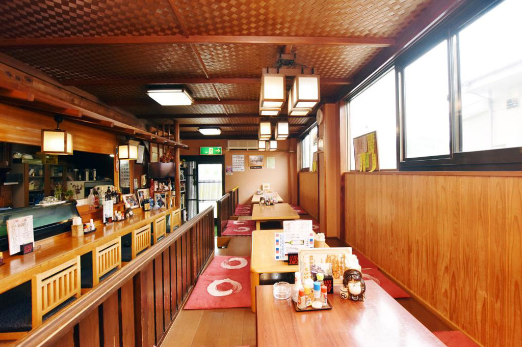 山梨市役所近くに位置し、昼も夜も豊富なメニューを揃え、一人でも家族連れでも楽しめるお店。