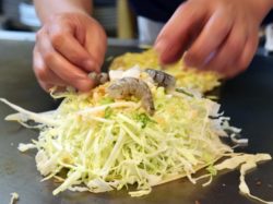 広島風お好み焼 てっぱん広島直送、広島風お好み焼きには欠かせない19㎜の自慢の鉄板で焼いたお好み焼きは本場の味♪そば・豚肉・... -