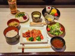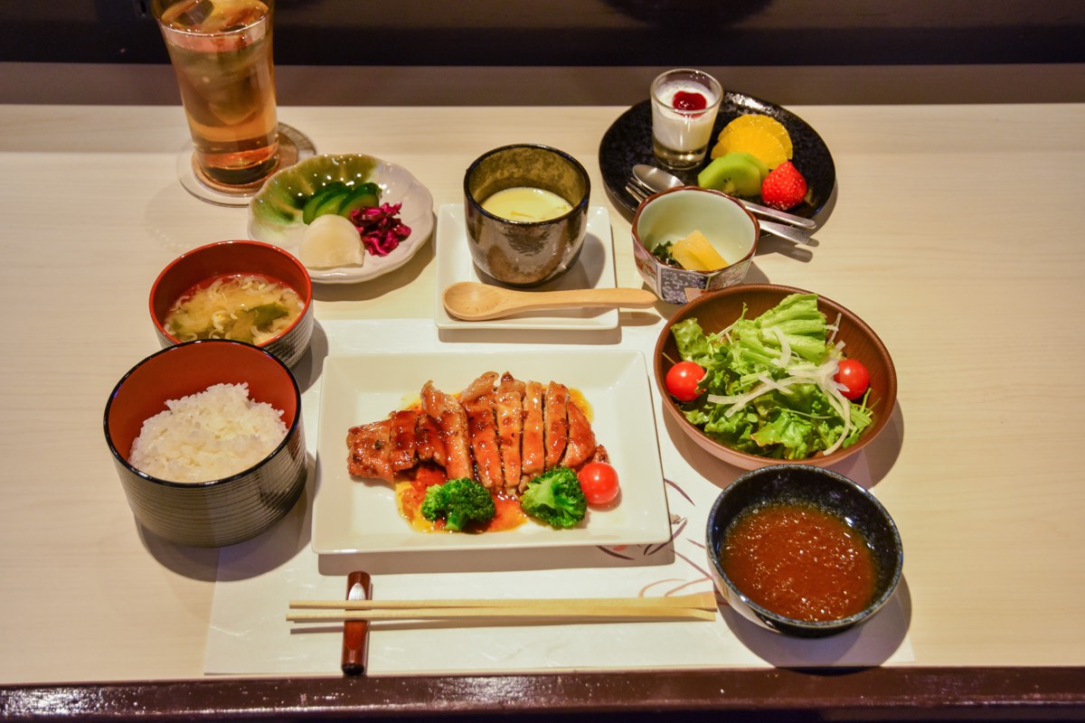 【ランチ】 ・てんぷら御膳 2,200円(海老・イカ・旬の野菜、サラダ、茶碗蒸し、小鉢、ごはん、汁、香の物、デザート) ・豚ロース香味御膳 2,200円(豚ロース120g、サラダ、茶碗蒸し、小鉢、ごはん、汁、香の物、デザート) ・うなぎ御膳 2,530円(うなぎ、サラダ、茶碗蒸し、小鉢、ごはん、汁、香の物、デザート) 【ディナー】 ・花懐石 4,620円(前菜、椀、造り、焼物、蒸し物、揚物、食事、デザート) ・葵懐石 6,600円※花懐石にステーキ70g付き ・アラカルト各種 |