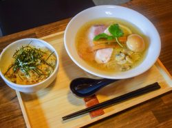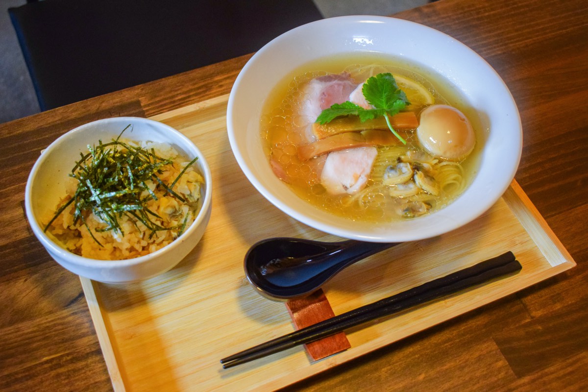 ムール貝・あさり・ハマグリのトリプル貝出汁に塩ダレを合わせた、まさに貝尽くしの塩そばは、あっさりと癖のない味わいでクラム好きをノックアウトする。