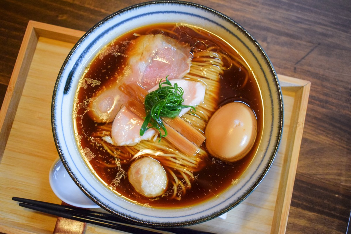 一方、醤油そばは5種類の醤油をブレンドし、鶏清湯スープにポルチーニオイルの香味油で香り高く。