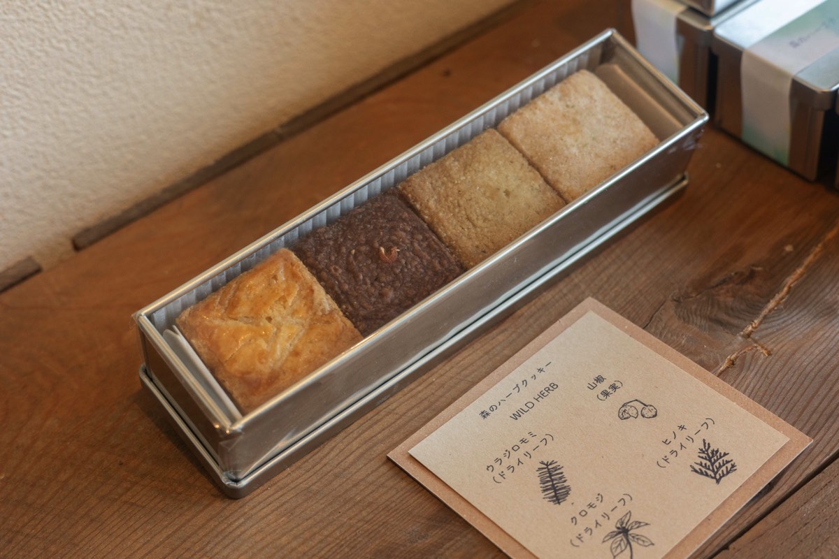 ・森のプリン 700円 ・パウンドケーキ 650円 ・森のマシュマロ 650円 ・森のハーブクッキー(缶) 2,400円 ・松のチーズケーキ(ホール) 4,500円 |