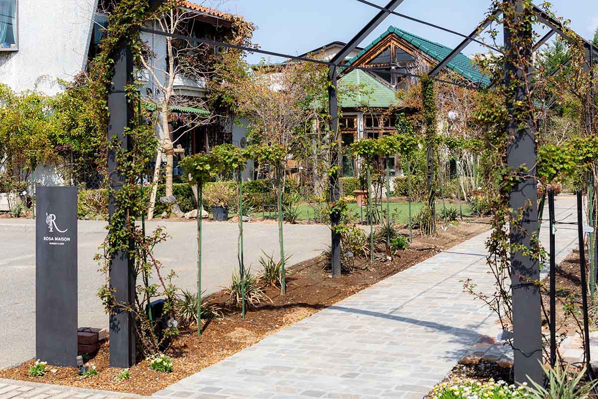 笛吹市石和町の「ROSA MAISON」は、コマツガーデン直営のガーデン&カフェ。広い庭を様々なバラやグリーンが彩り、至福のカフェタイムをゆるやかな時間の中で満喫できる。