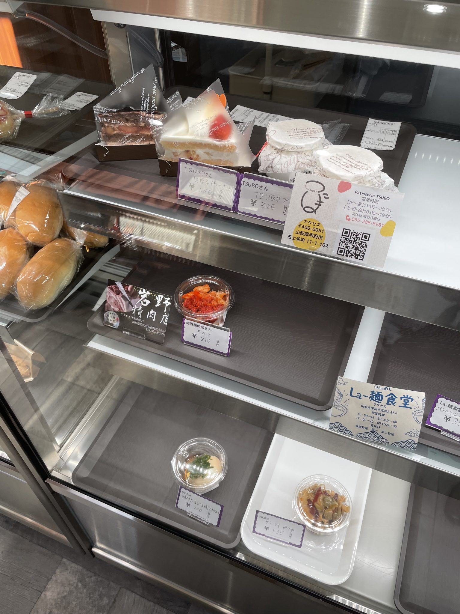 <ルビアン不二> ・きなこパン ・野菜サンドのバケット <岩野精肉店> ・ちまき ・チャーシューミニ <TSUBO> ・生菓子(ケーキ) <ya:me> ・コーヒーゼリー ※ラインナップは日によって異なる |