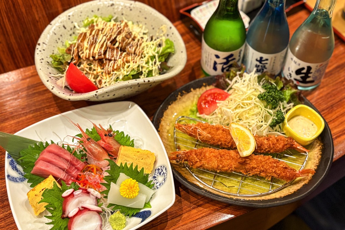 中央市の「酒彩 縁屋」。“人と人との繋がりを大切に”をコンセプトに、落ち着いた空間で種類豊富な料理の数々が味わえる。